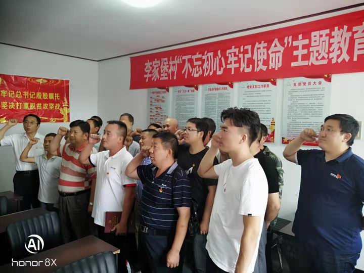 在主题党日活动中,欣润物流党支部书记陈海河同志结合扶贫工作就“不忘初心、牢记使命”主题教育讲专题党课,大家还就无纺布加工、特色农产品的销售以及劳务输出等扶贫项目与村两委及党员进行了交流、探讨。公司党员还与驻村工作队及李家堡村全体党员一起重温了入党誓词, 回顾入党初心,在党旗下接受心灵的净化和洗礼,激励党员干部牢记共产党员的政治责任和历史使命,以更加饱满的热情投身各自工作,切实发挥共产党员的先锋模范作用。