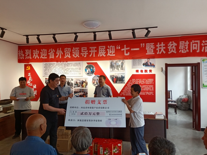 公司向李家堡村捐赠帮扶资金。公司党委常委、副总裁张文博对涿鹿县赵家蓬区谢家堡乡各级政府在省外贸资产公司帮扶李家堡期间给予的大力的支持表示感谢,并代表公司向李家堡村捐赠2020年度扶贫专项资金。