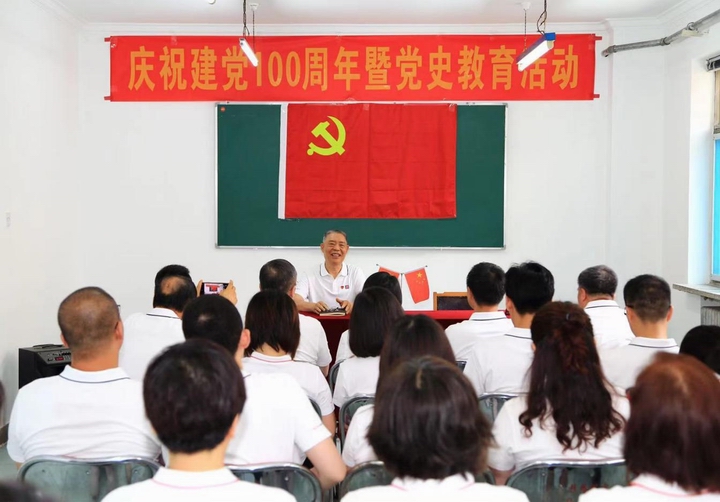 党旗就是使命 6月30日,老党员、老书记白庆润同志以《回顾历史,不忘初心和使命》为题为全体党员上了一堂生动的党课,带领大家回顾了党的百年光辉历程和取得的伟大成就。他从各个时期的矛盾问题入手解析我们党所走过的不断发展的前进的道路,希望全体党员不忘历史,居安思危,不断强化使命意识和责任担当,积极发挥党员的战斗堡垒和先锋模范作用,奋发进取推动公司各项工作高质量发展。